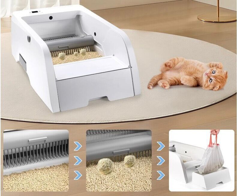 ארגז צרכים אוטומטי לניקוי עצמי לחתולים, המעלים ריחות ומקל על הטיפול במספר חתולים – ללא צורך במגע עם הפסולת. מספק ניקיון ותחזוקה פשוטה, אידיאלי לבית נוח והיגייני .